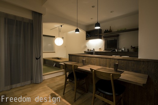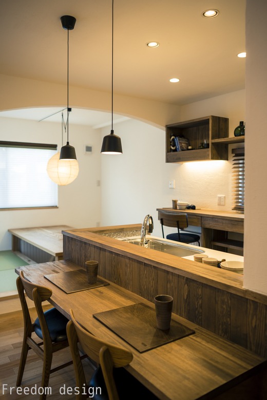 ご夫妻のご要望は、家族の会話が弾んで、お酒も美味しく楽しめる囲炉裏座卓のある家。