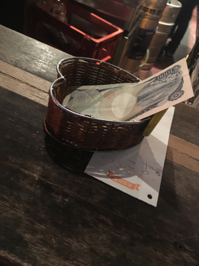 カウンター上の小さなザルにお金をプールしておいて、注文するたびに店員さんがお代を持っていく海外のバースタイル。