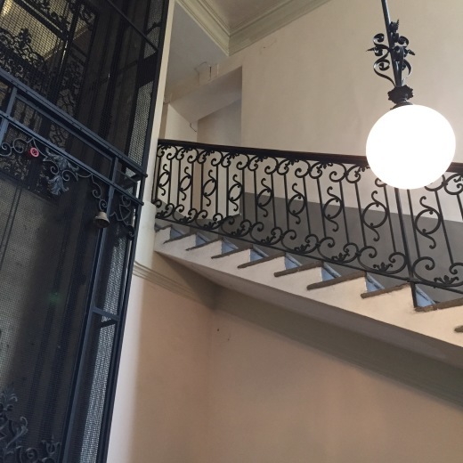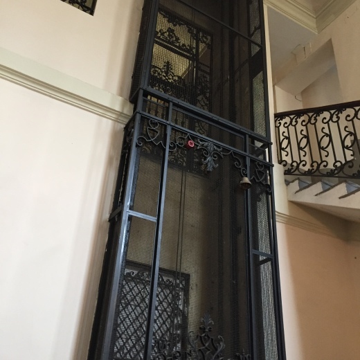 昔の映画でしか見たことのない手動で開閉するエレベーターを見て驚いて撮影。