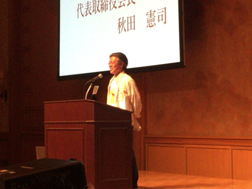 開会あいさつする無添加住宅開発者でもある無添加住宅 秋田会長。