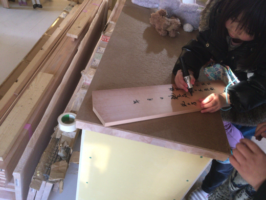 最後に棟札にご家族のお名前を書いて頂き屋根裏に納められます。