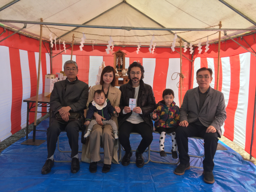 ご家族揃っての鍬入れ、 地鎮の儀です。