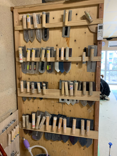 館内の仕上げは、卒業生達の作品だそうで、覚えの早い生徒さんは、実際の広い面積で腕を試したいと積極的にチャレンジされるそうです。