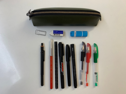ペンケースは、フリーダムと同じモスグリーンを見つけて以来、こちらを愛用しています。