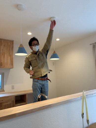 画像的に、「やったー!ポーズ」になっていますが、至極真面目に照明器具の調整中の日向です。