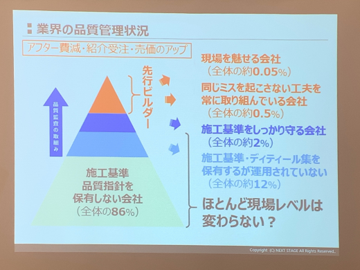 現場管理者や職人さん任せの施工になり、関係者によって品質が異なる家が出来てしまう、ということだと思います。
