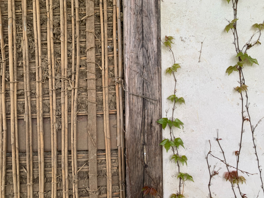 細い竹や貫を小舞縄と呼ばれる縄で、縦横に組んで固定した塗壁の下地。