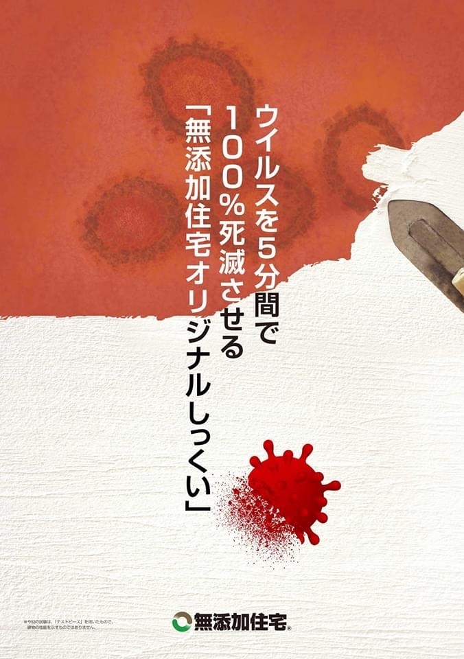 フリーダムデザインで、全棟採用している【無添加住宅オリジナルしっくい】が、ウイルスを5分間で100%死滅!とのニュースが入りました。