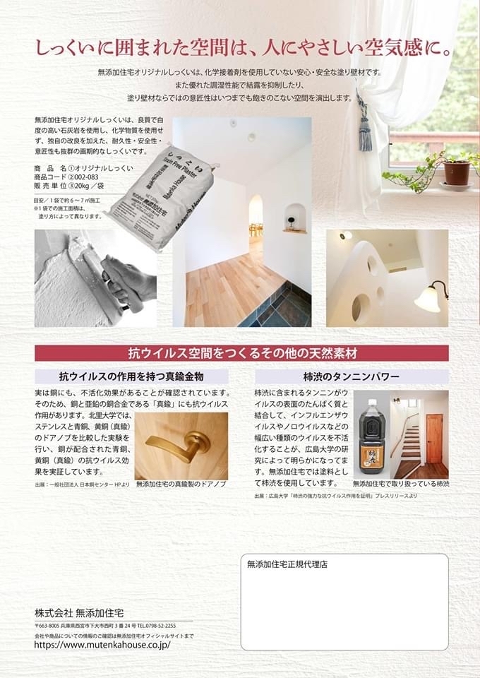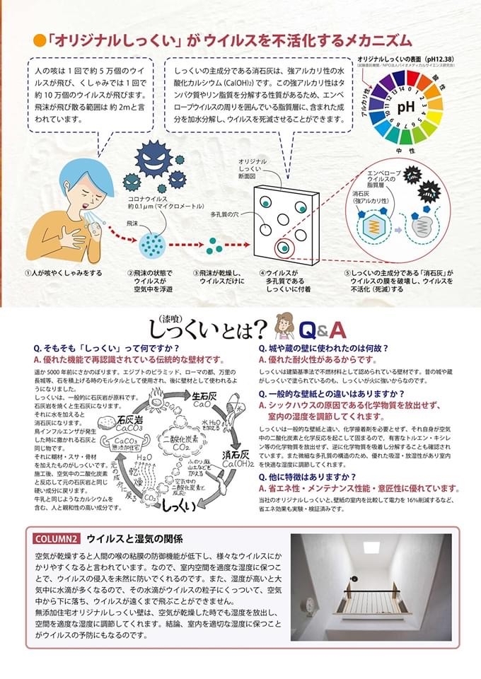 ※無添加住宅オリジナルしっくいは、ウイルスを不活化する作用を有していますが、感染予防を保証するものではありません。