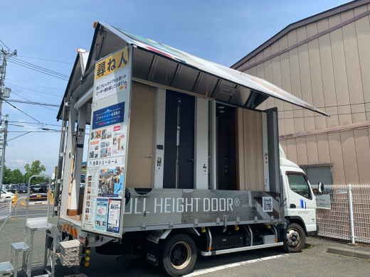 2月の【北欧コレクションの映える家】のお住まいにも採用していたドアの移動ショールームがフリーダム駐車場に到着しました。
