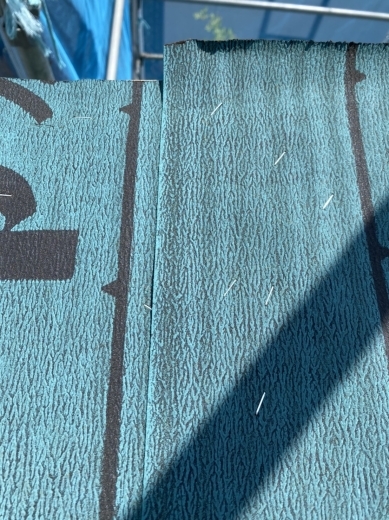 ルーフィングには重ねシロを表す黒いガイドラインがありますが、これは100mmを示していますので、ガイドラインが見えていると結果、重ねシロ不足という事になります。