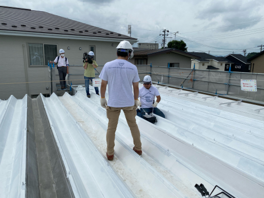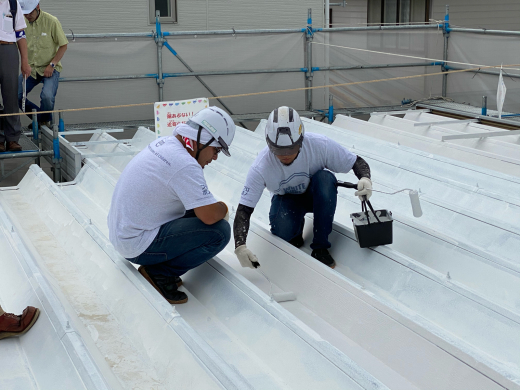 プロの方々が、参加者に屋根塗装のノウハウを伝授してくれています。その際に、輻射熱、熱伝導などの温熱の基礎要素を改めて学びました。