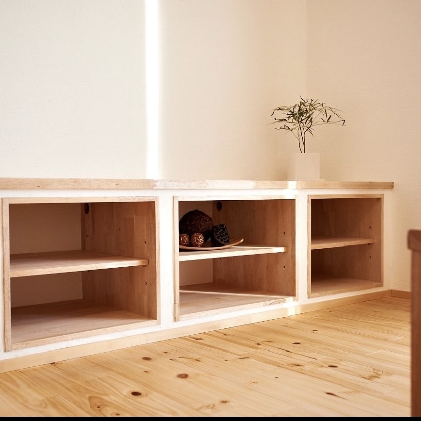 ⚫︎ナチュラル色の収納たくさん造作テレビ台↓↓↓