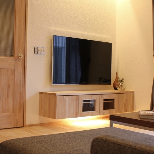 ⚫︎スッキリしっくい壁+間接照明の浮き造作テレビ台