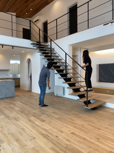 アテンド担当 市川も加わって、階段について検証中↓↓↓