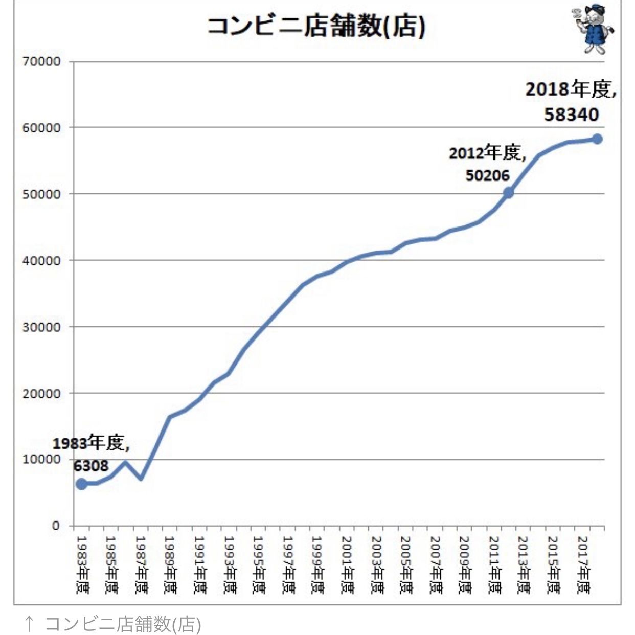 個人的に、近所のコンビニはどんどん少なくなっている印象だったのですが、全国レベルで見るとそんなことない様です^^;