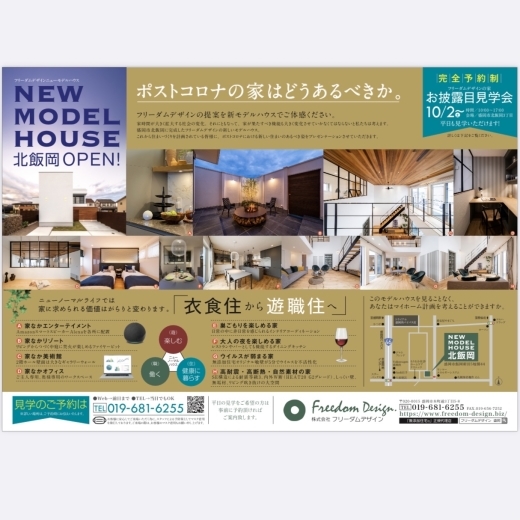 盛岡市北飯岡に完成したフリーダムデザインの新モデルハウス。