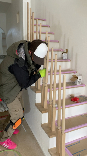 こちらは、内部のオープン手すりを設置中。