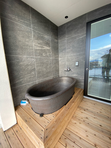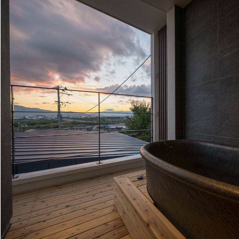 リビングからの眺望も素晴らしく、時間を忘れてうっとりするお住まいですが、2階の外風呂が素晴らしいのです↓↓↓