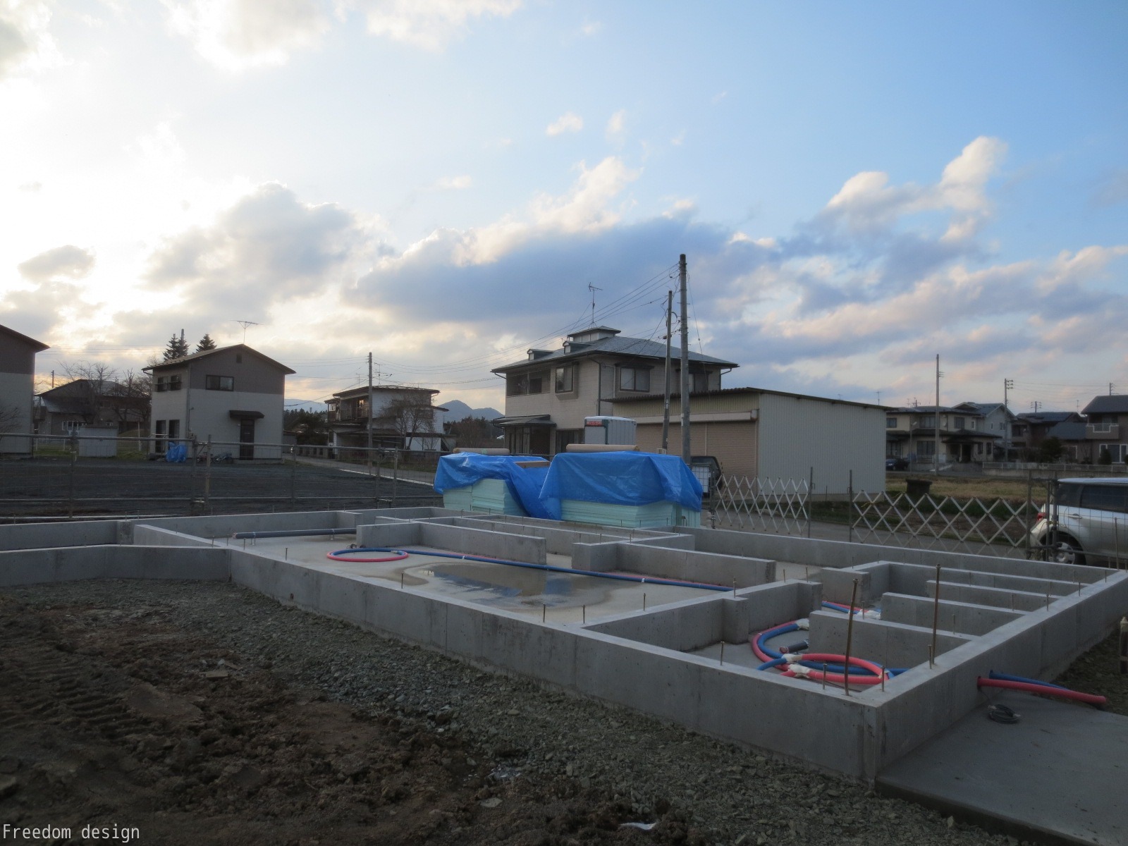 まだ肌寒い3月から基礎工事がスタートして、