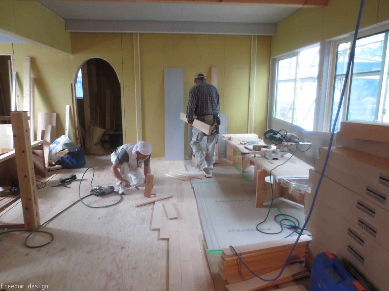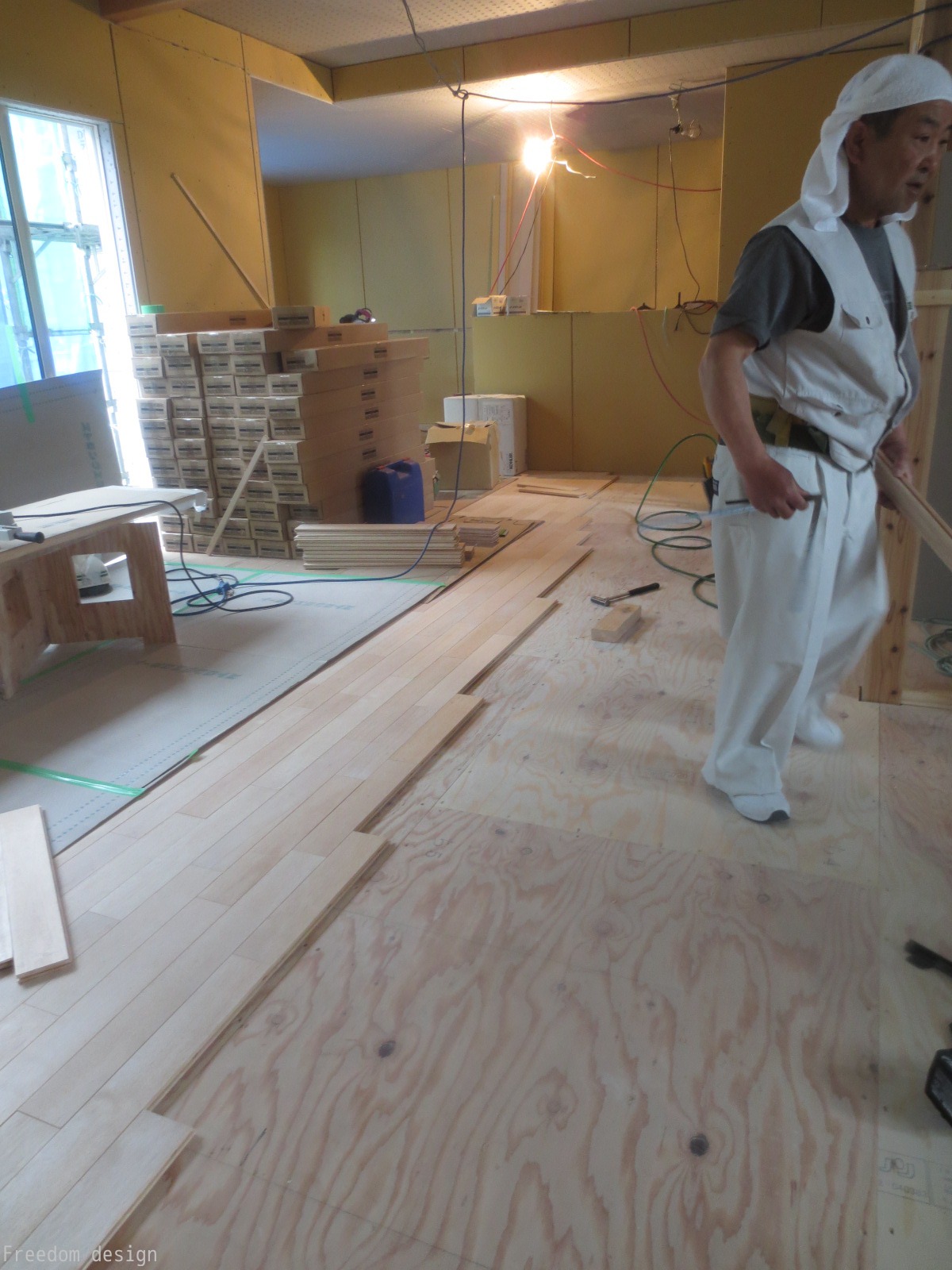 無垢フローリングを張って