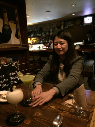 市川さんは、キュウィフルーツのカクテルをいただくところです。見るからにフレッシュで美味しそうです*(^o^)/*