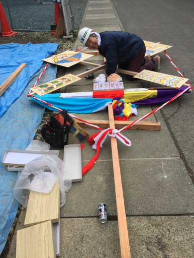 先日行われたS様の上棟式矢羽を作る簗場さん。満面の笑みです*(^o^)/*