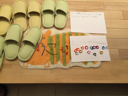 その時に、小学校一年生のA君が玄関ホールの床にウエルカムメッセージを、準備して出迎えてくれました(T ^ T)