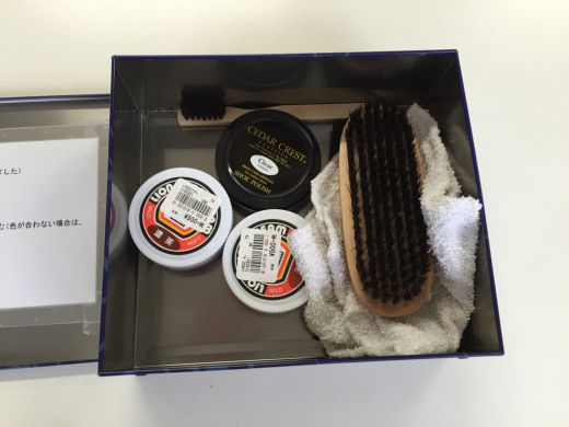 スタッフみんなに、自分を磨いて欲しいから、靴みがきを準備しました*(^o^)/*