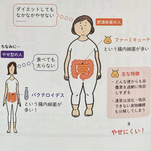 ちなみに、痩せ型の人には「バクテロイデス」という細菌の割合が多く、食べても太りにくい体質になるとされています。