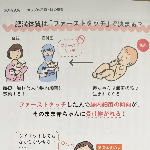 もし、ファーストタッチした人が、ファーミキューテス多めの肥満体質の人であれば、その子にもそれが感染し、太りやすい体質になってしまうのです!