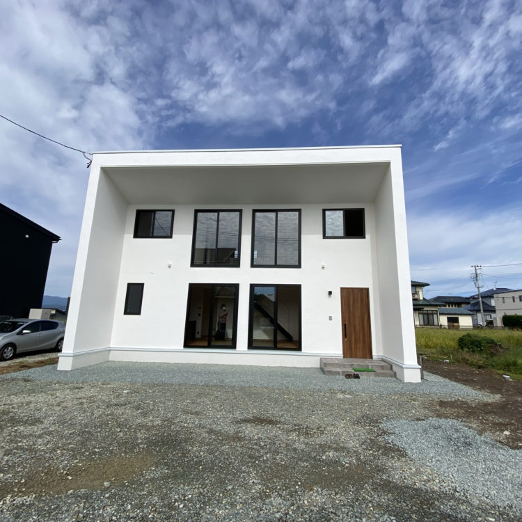 軒の出が大きいデザインで、BOX型のフォルムを強調されています。