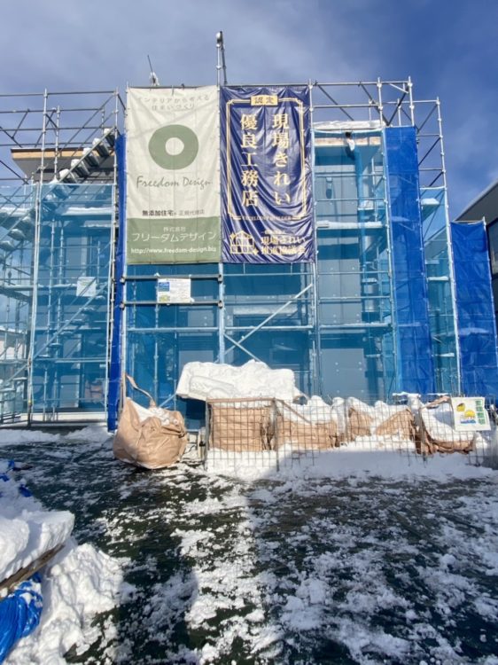 1時間ほどで、現場内と駐車場3台分の雪かきが完了しました。