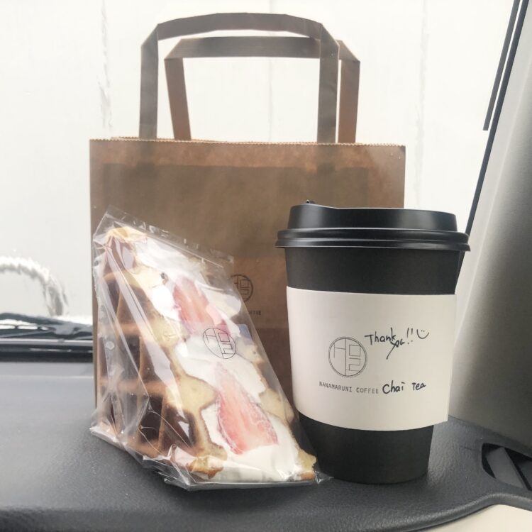 こちらはテイクアウトですが、寄りました。(何も映えない車内の写真で恐縮です)