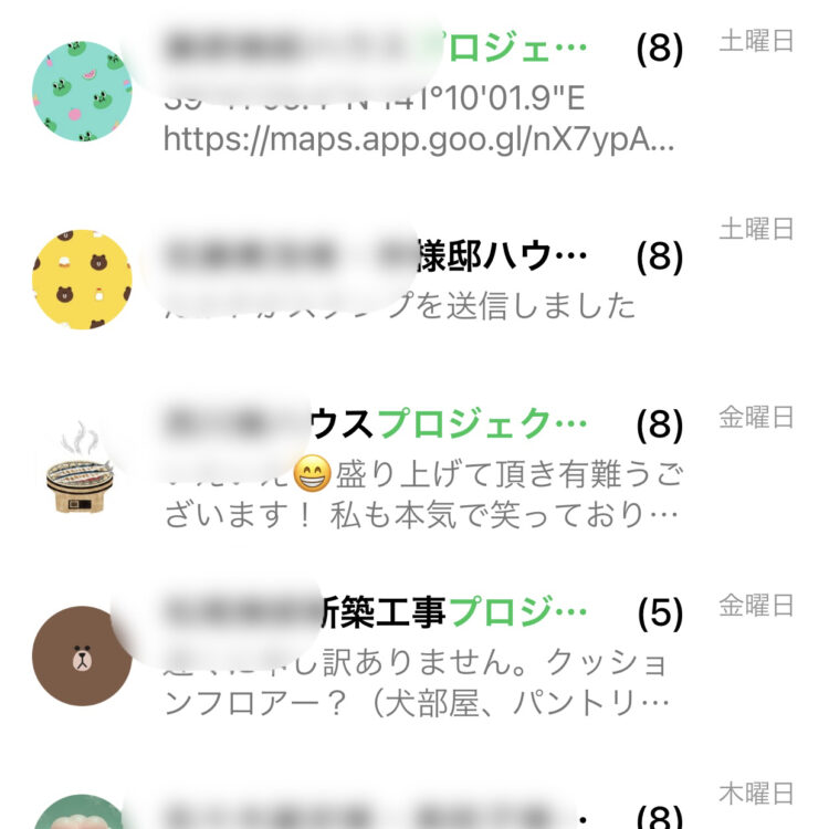 完成して振り返ると、契約まではお客様からのLINEが多く、工事中は現場報告などが多くなります。