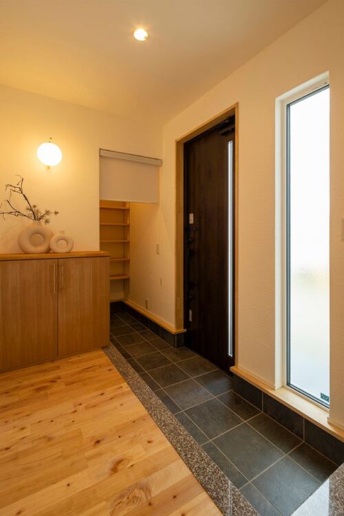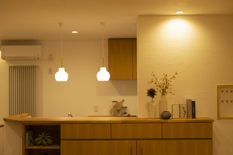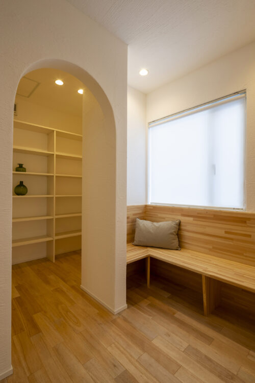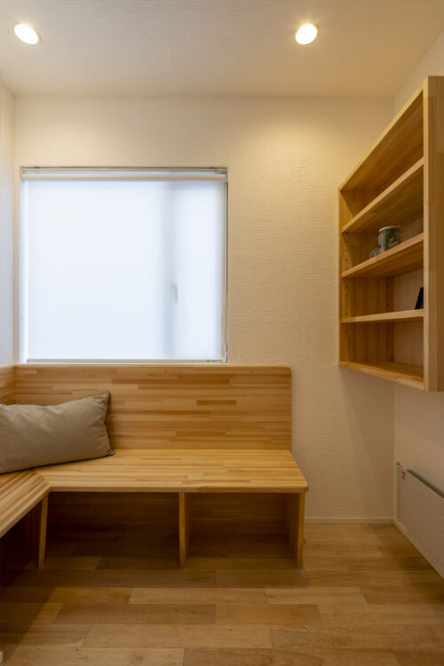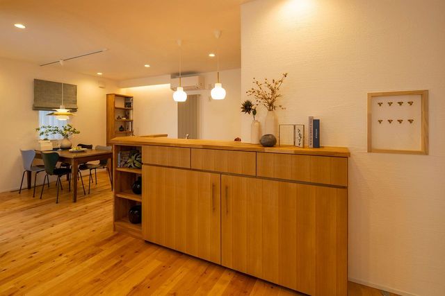 随所に、タモ材で造作をした収納を見ていただきたいです。